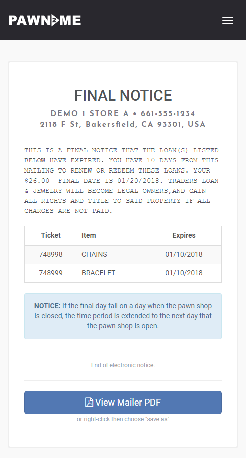 | 19:51, 24 April 2018 | Pawn2ME FinalNoticeExample.png (file) | Error creating thumbnail: Unable to save thumbnail to destination |